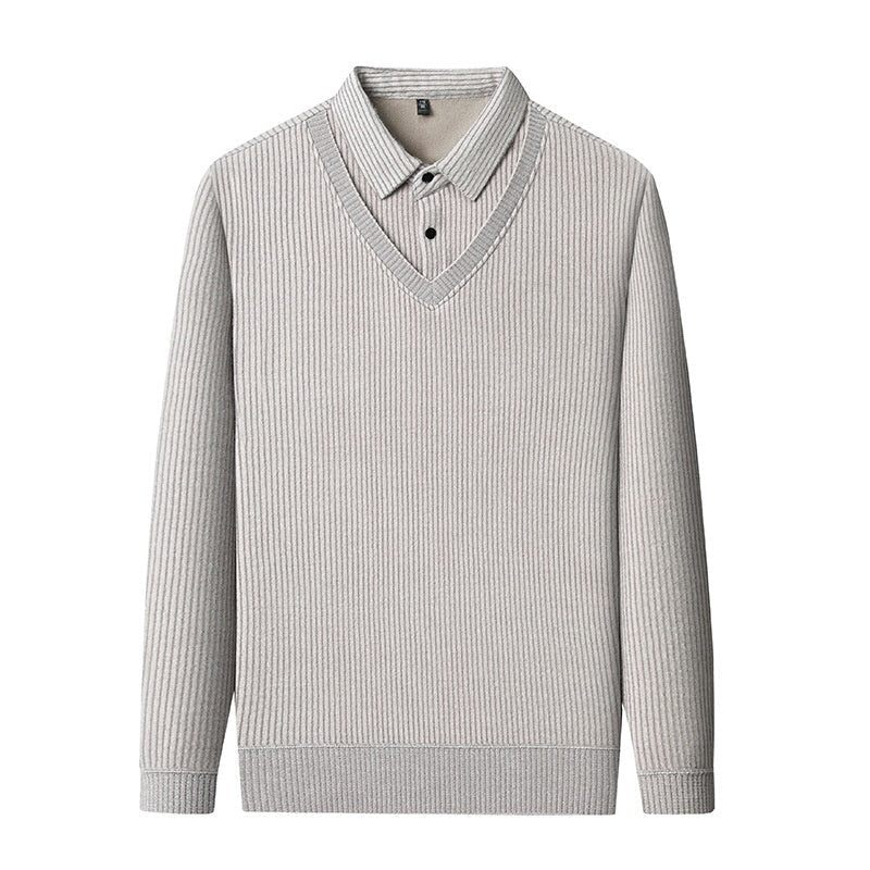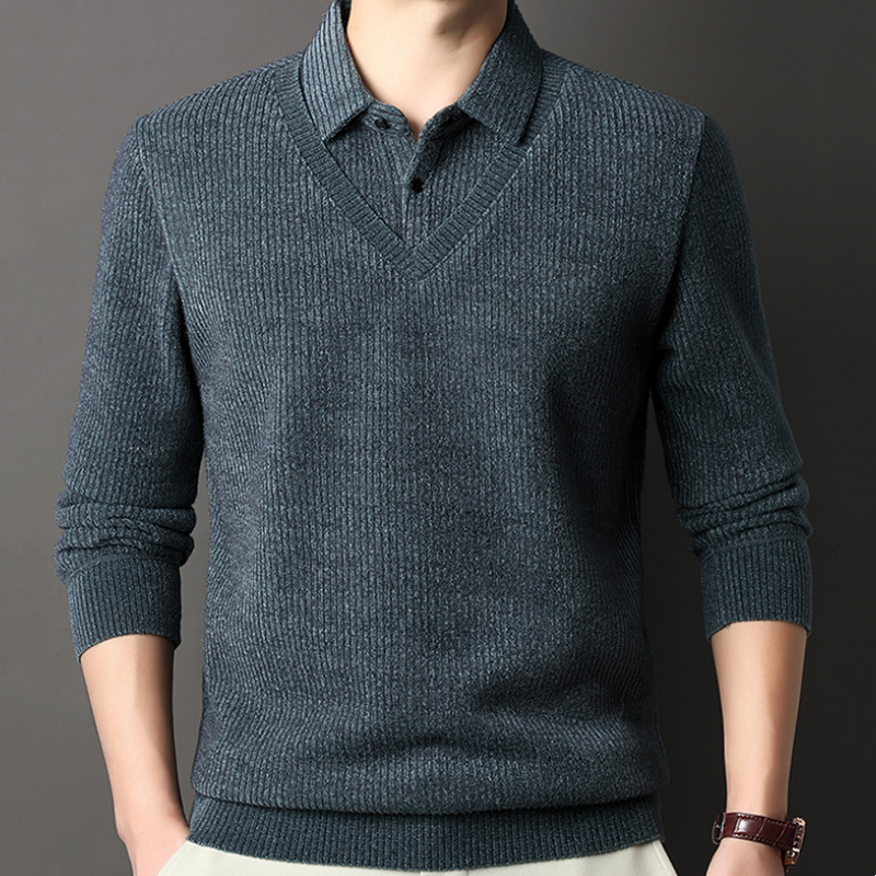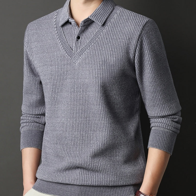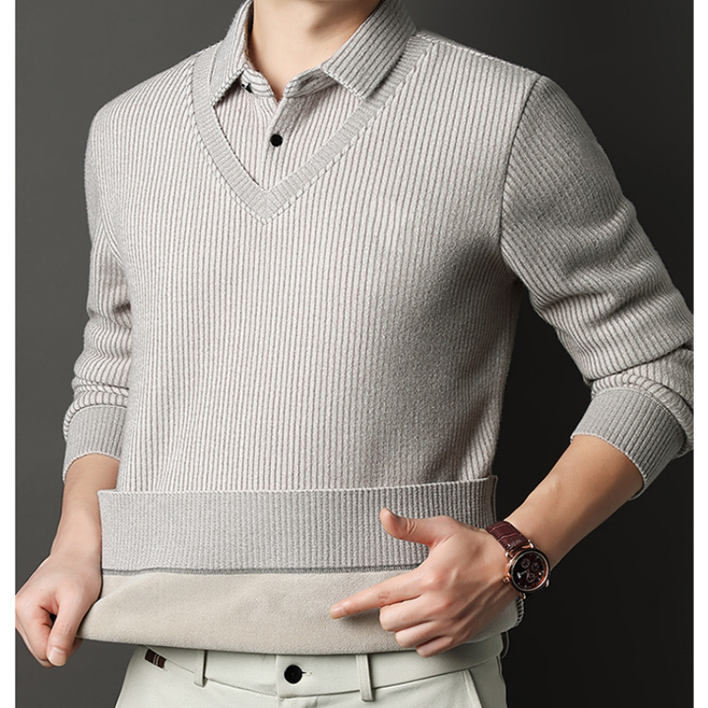 Men's V-Neck Fake Two-Piece Knitted Sweater